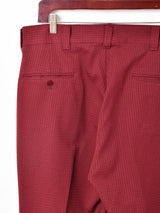 格子状に細かく織られた生地がポイントのフレアパンツ。おそらくポリエステル素材で、さっぱりとした生地感です。