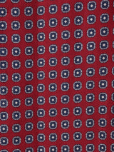 ワインレッドとコモン柄がマッチした品のよいスカーフ。ウールとシルクの混紡素材の滑らかな生地感です。