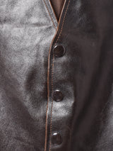 深みのあるブラウンレザーがムード満点のベスト。おそらくポリエステル素材の裏地付きで、しっかりとした安心感のある一着です。