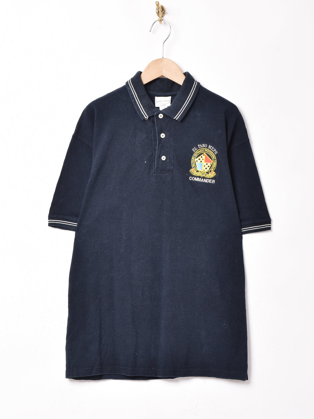 軍事指揮官のエンブレム刺繍が印象的なポロシャツ。ラインデザインがポイント。程よく厚みのあるさっぱりとしたカノコ生地が涼しげな一枚です。