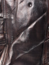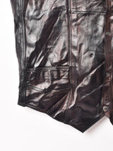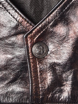 玉虫色の光沢感が魅力的なレザーベスト。裏地付きでしっかりとした生地感です。