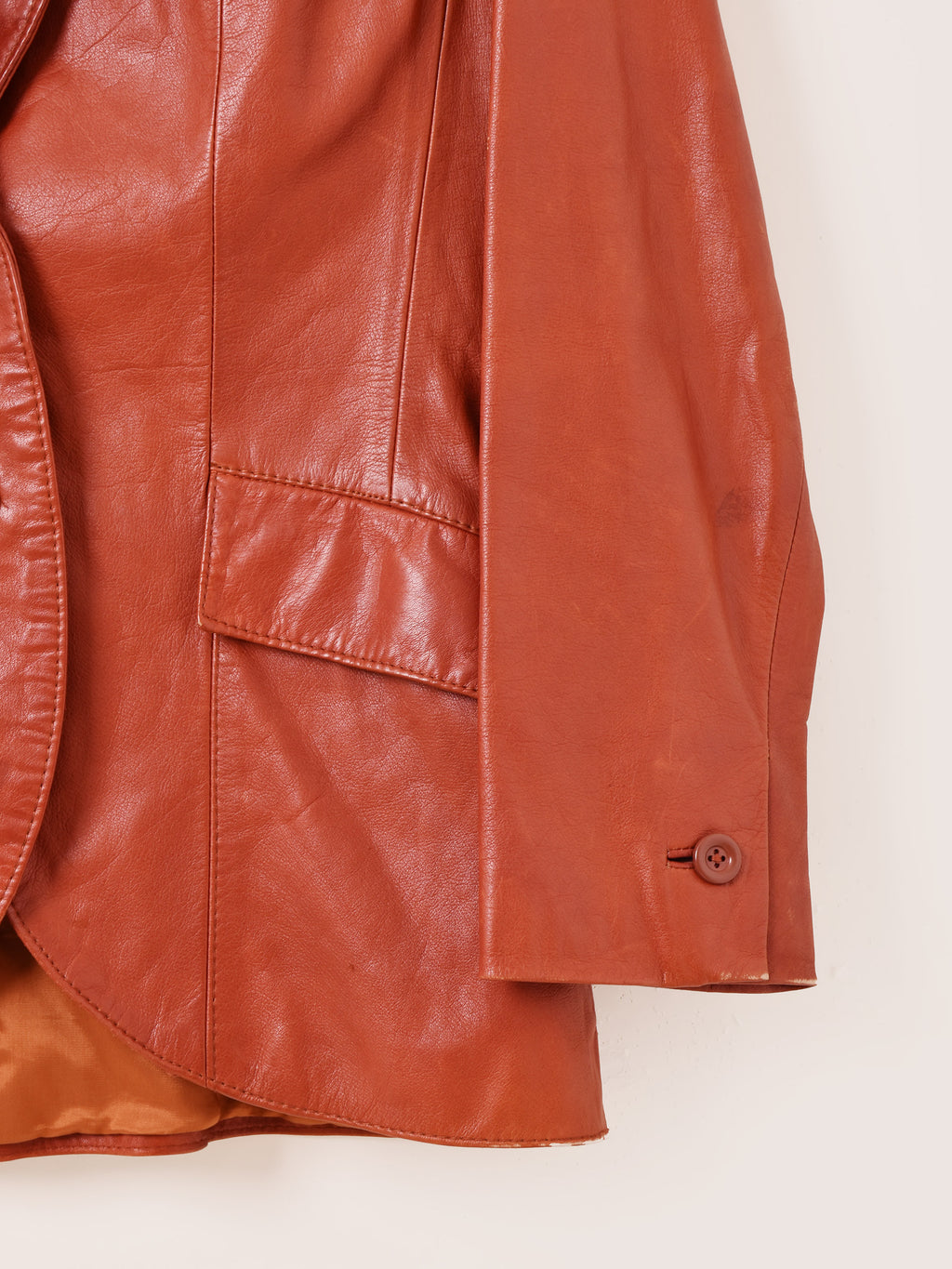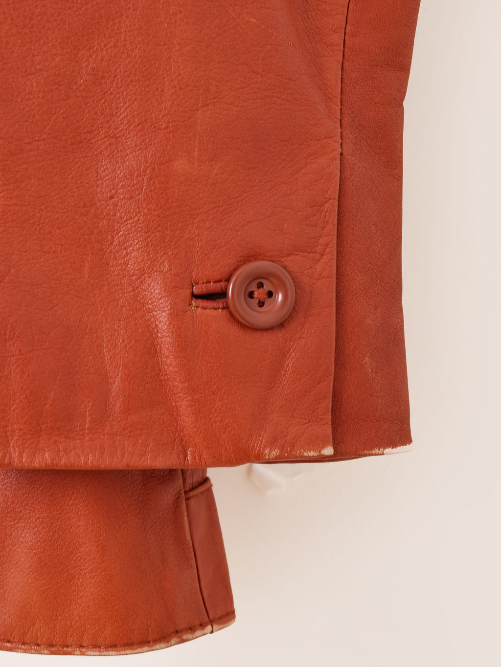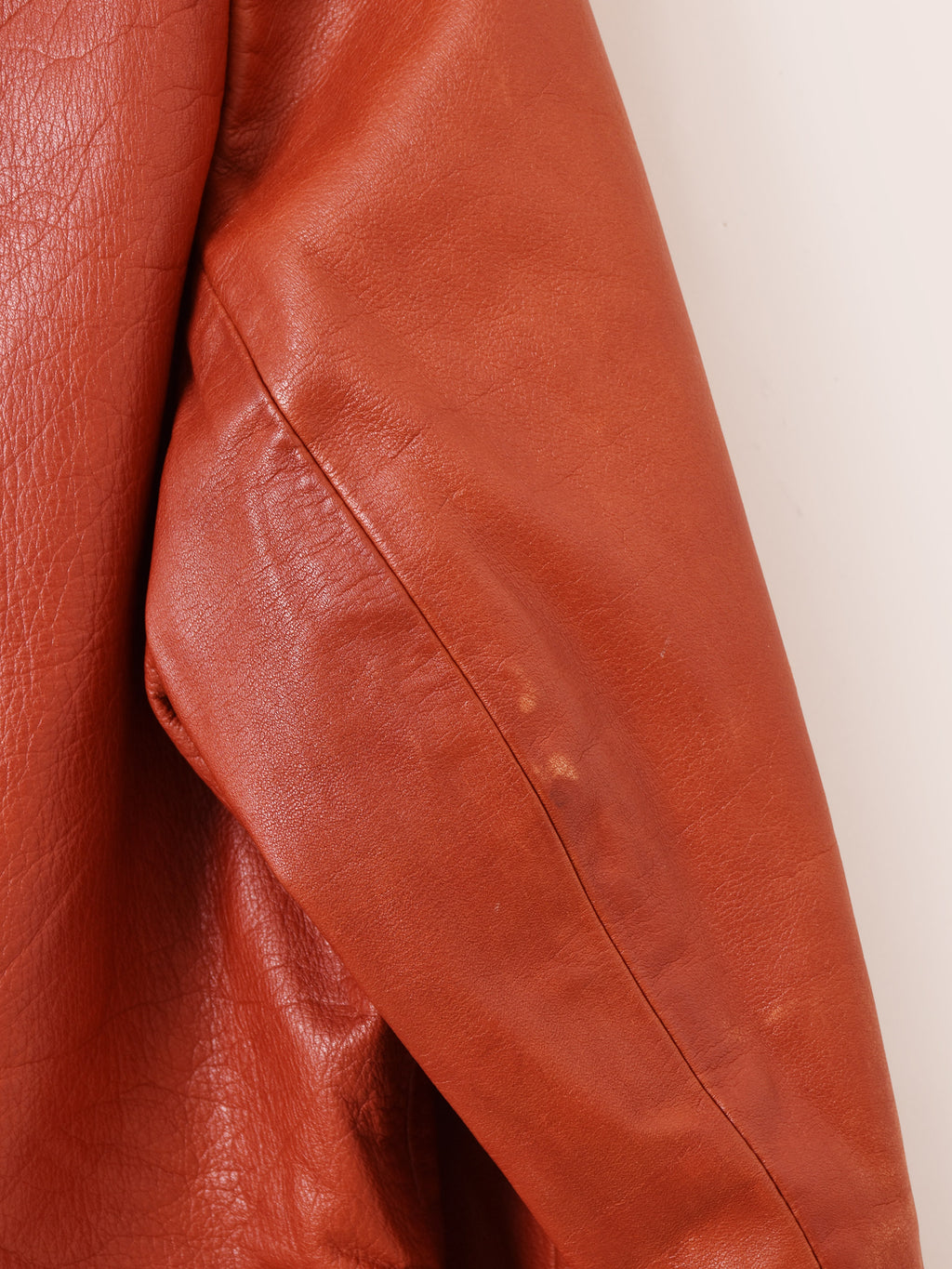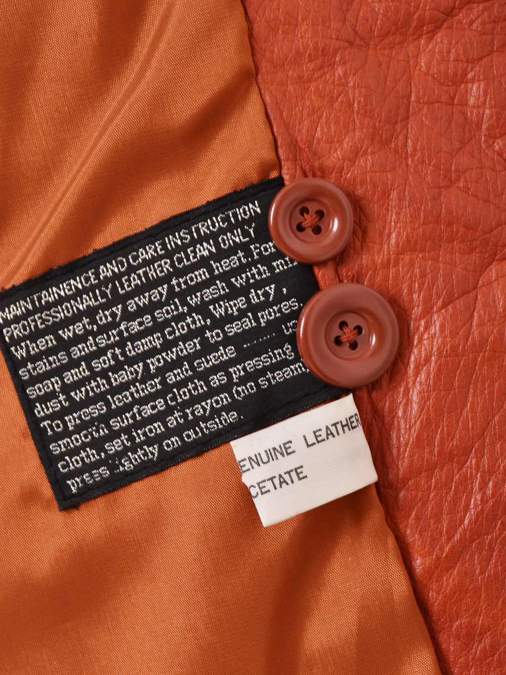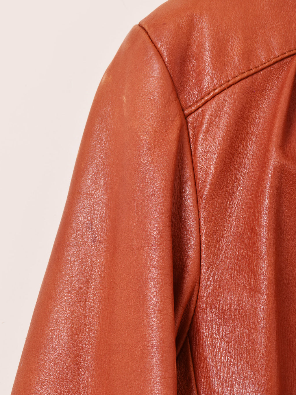 アメリカの3大ストアブランド、モンゴメリーワードのプライベートブランドでもあった「the tannery 」のレザーブレザー。オレンジのようなキャメルブラウンが目を惹きます。こなれた雰囲気のシルエットがコーディネートに華を添えてくれる一着です。