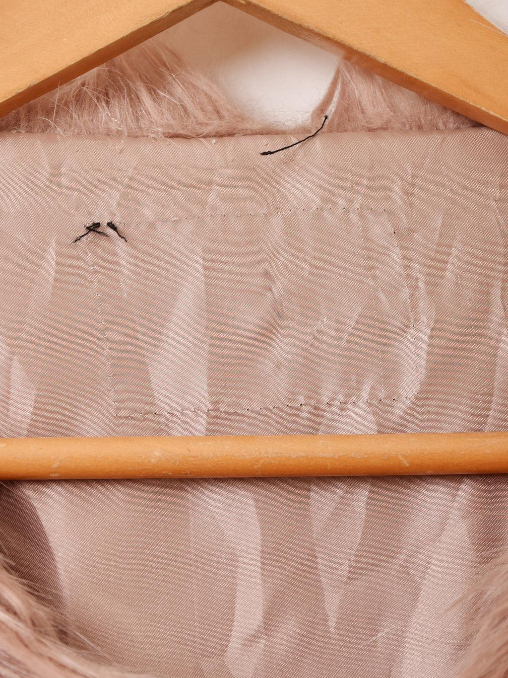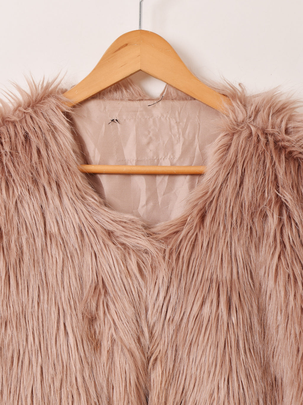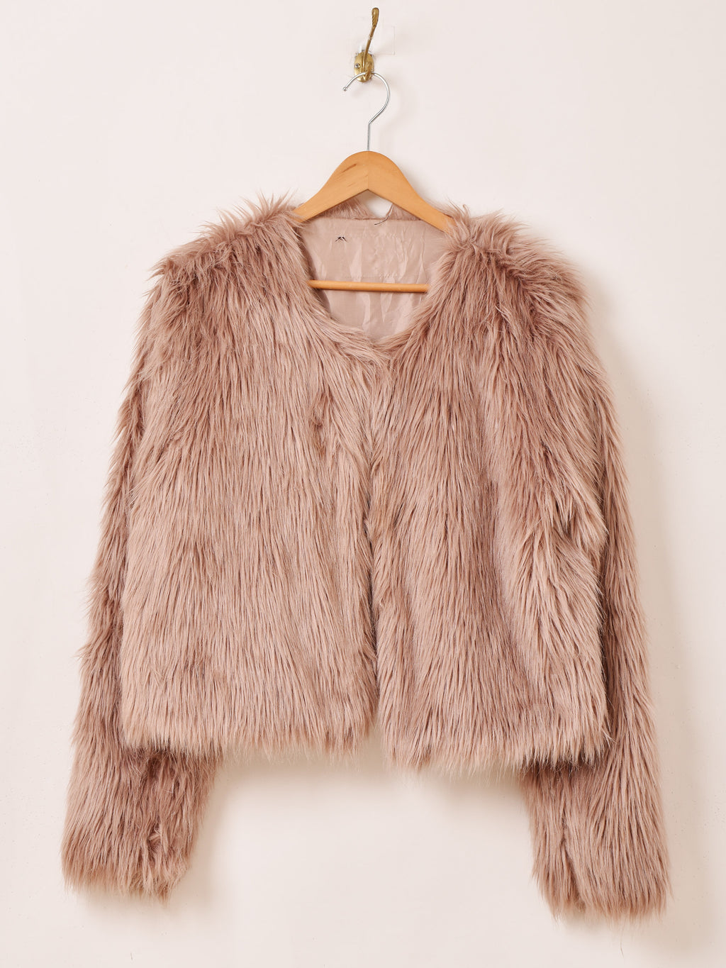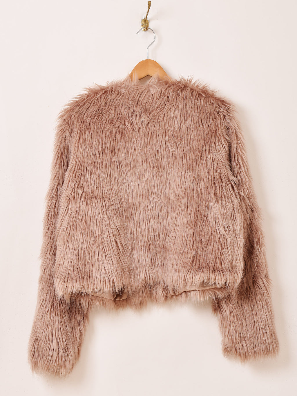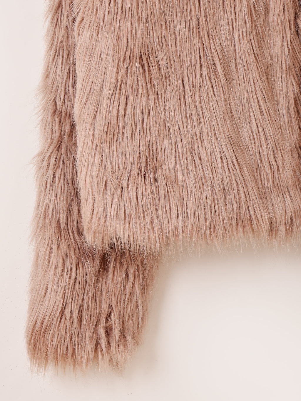 毛足の長いフェイクファーのジャケット。程よいボリューム感にショート丈で、コーディネートを華やかにしてくれる一着です。