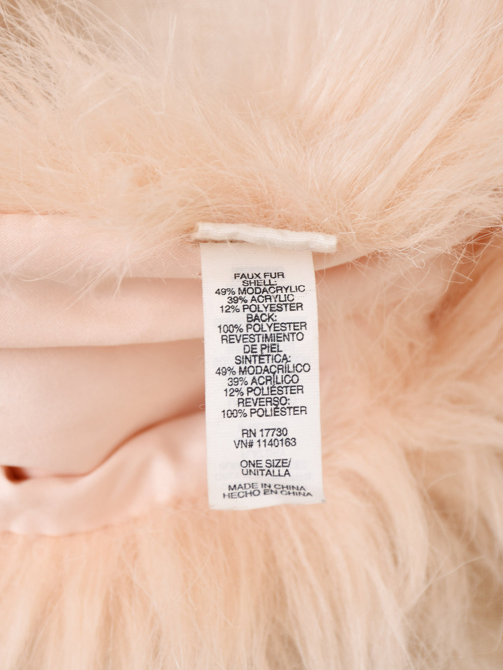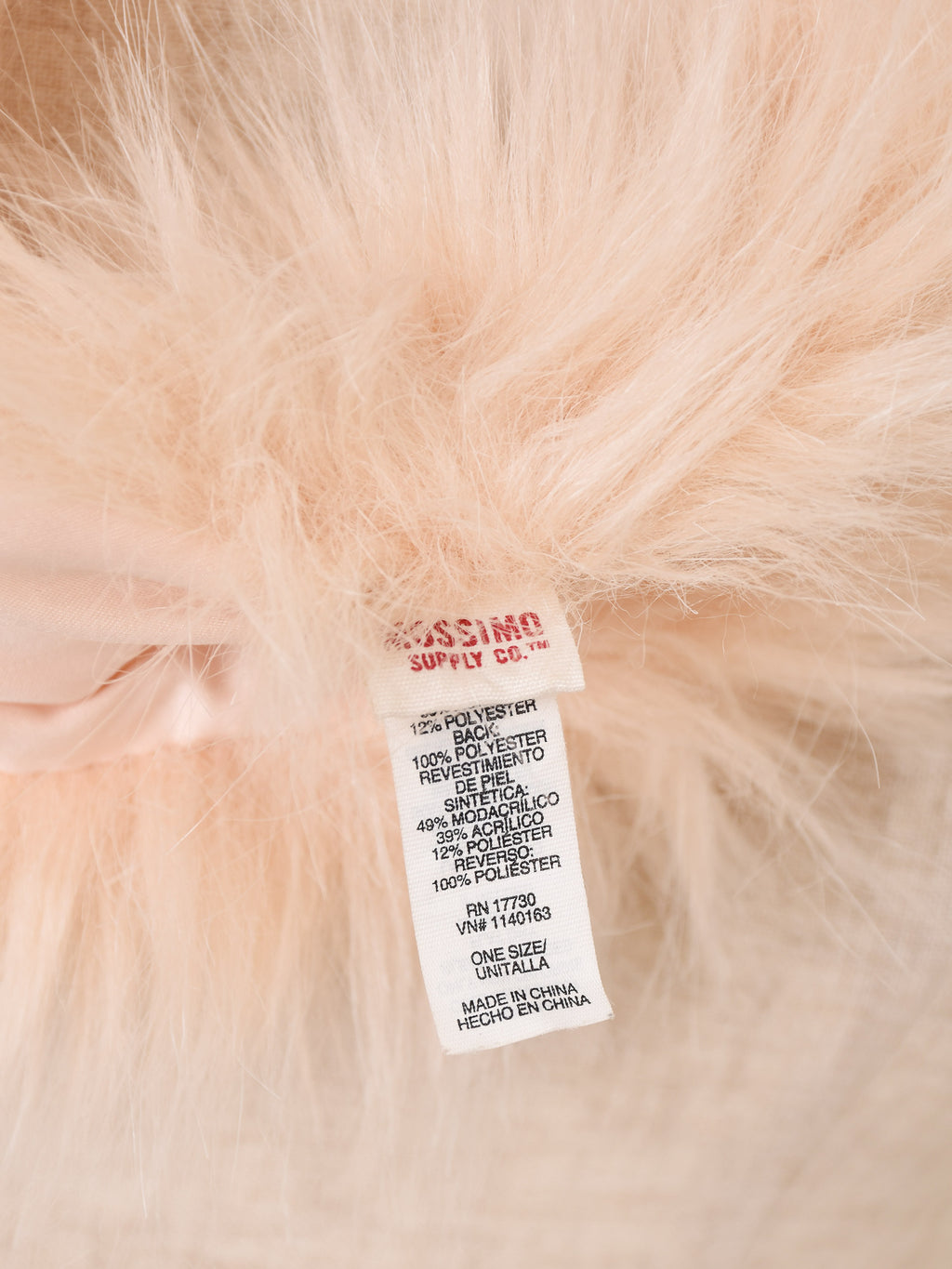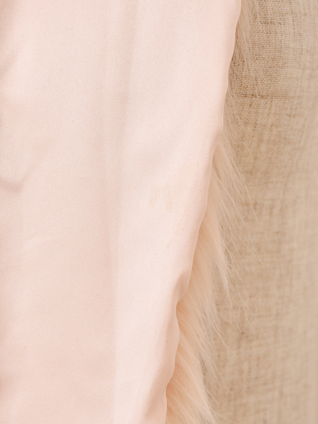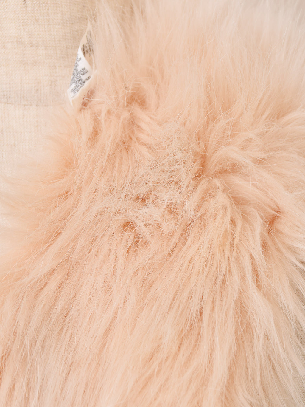 淡いピンクカラーのファーマフラー。首周りが華やかになります。腰に巻くなど、アレンジの幅も広がる一点です。