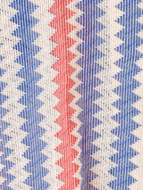 アメリカンなカラーのジグザグ模様が目を惹く開襟シャツ。コーディネートのアクセントになること間違いなしの一着です。共布のイージーパンツ、ワンピースとセットアップで着用も可能。透かし編みで夏らしく涼しげです。