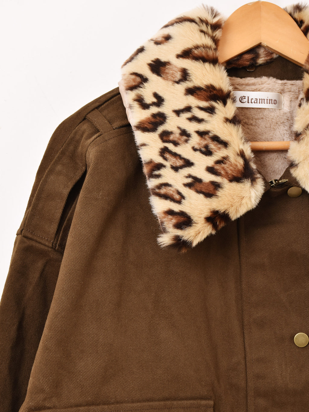 【3色展開】Elcamino レオパードファーカラー ブルゾン
