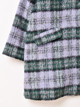 カラフルな色使いのチェック柄が目を惹くロングコート。ボタンはシングル。シャギーのような毛足の長い、秋冬らしいテキスタイルも魅力的な一着です。