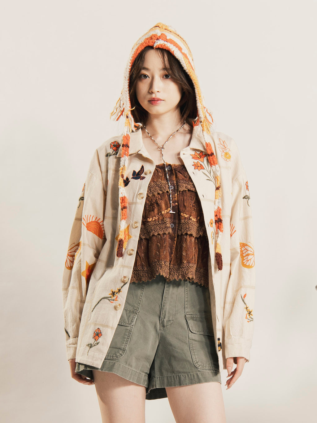 【4色展開】Emerald Motel エスニック レーヨン 刺繍 フリル キャミソール
