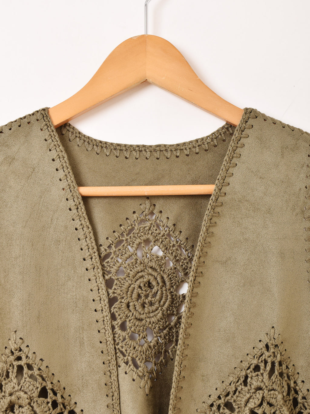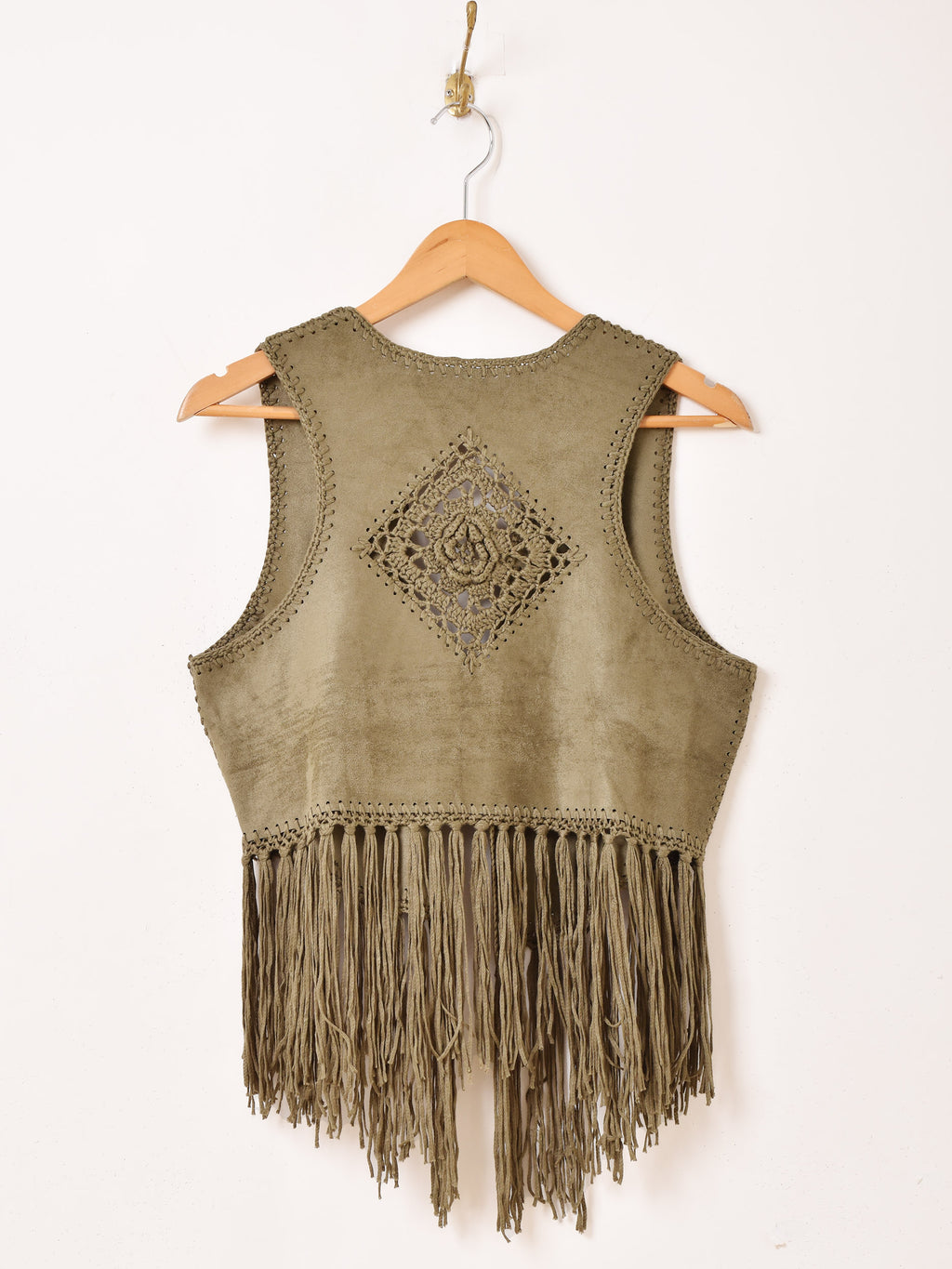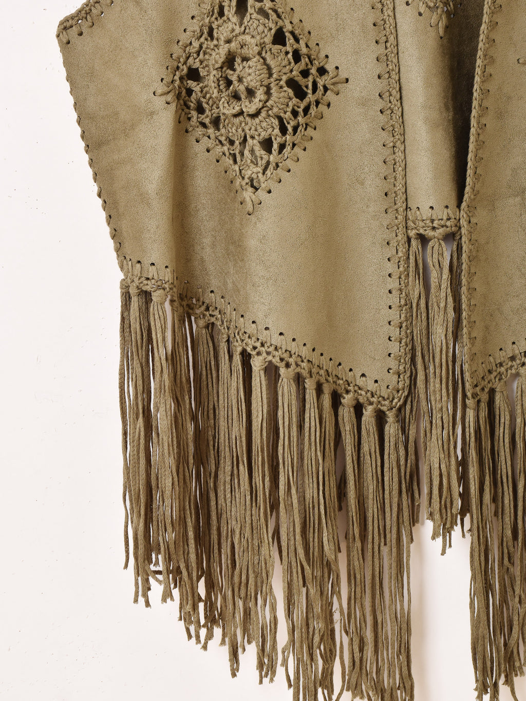 【2色展開】Elcamino フェイクスエード×クロシェ フリンジベスト
