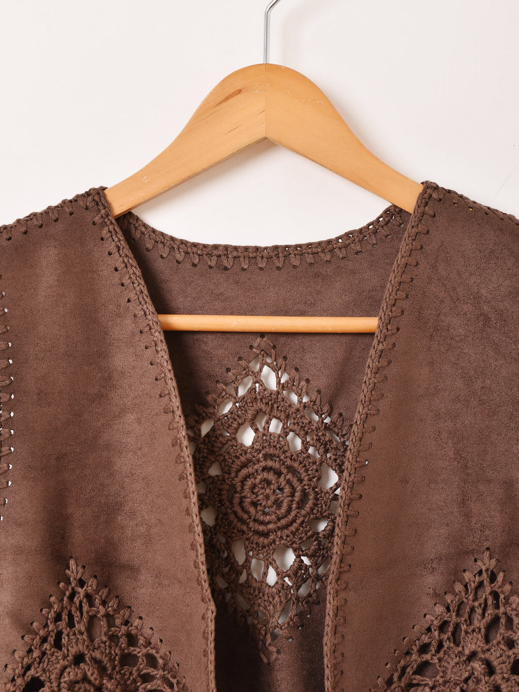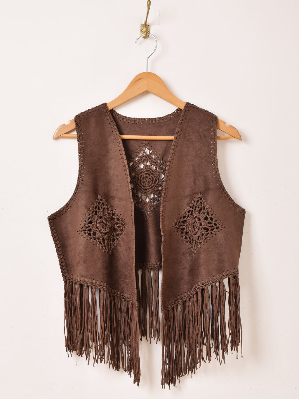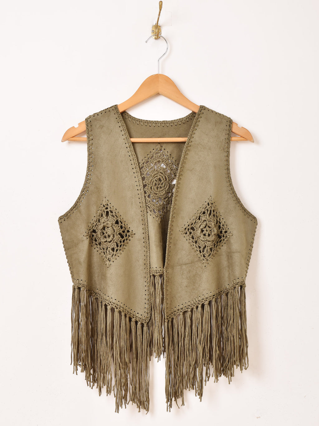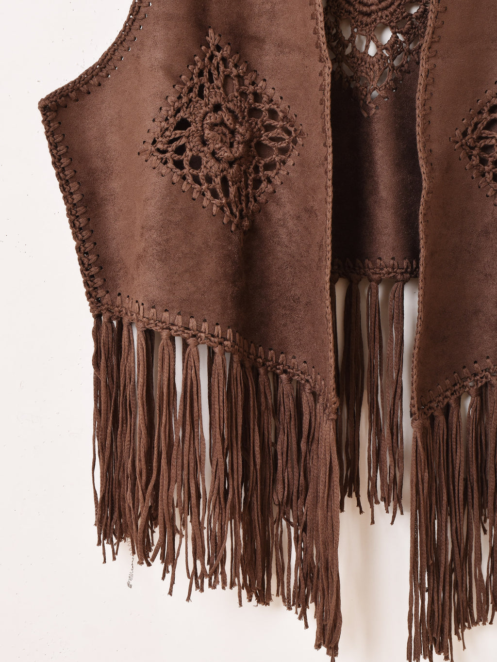 【2色展開】Elcamino フェイクスエード×クロシェ フリンジベスト