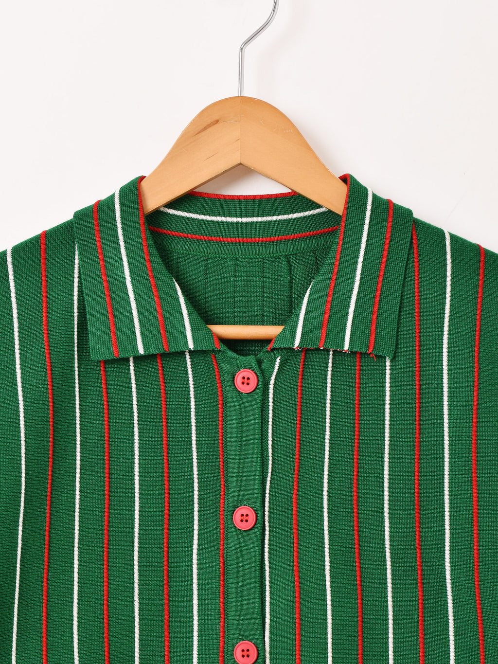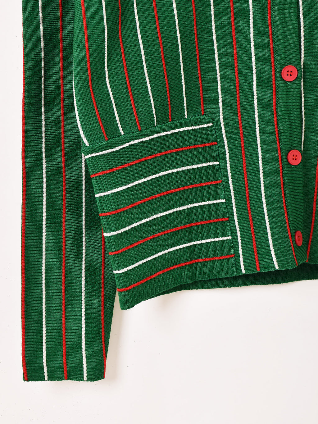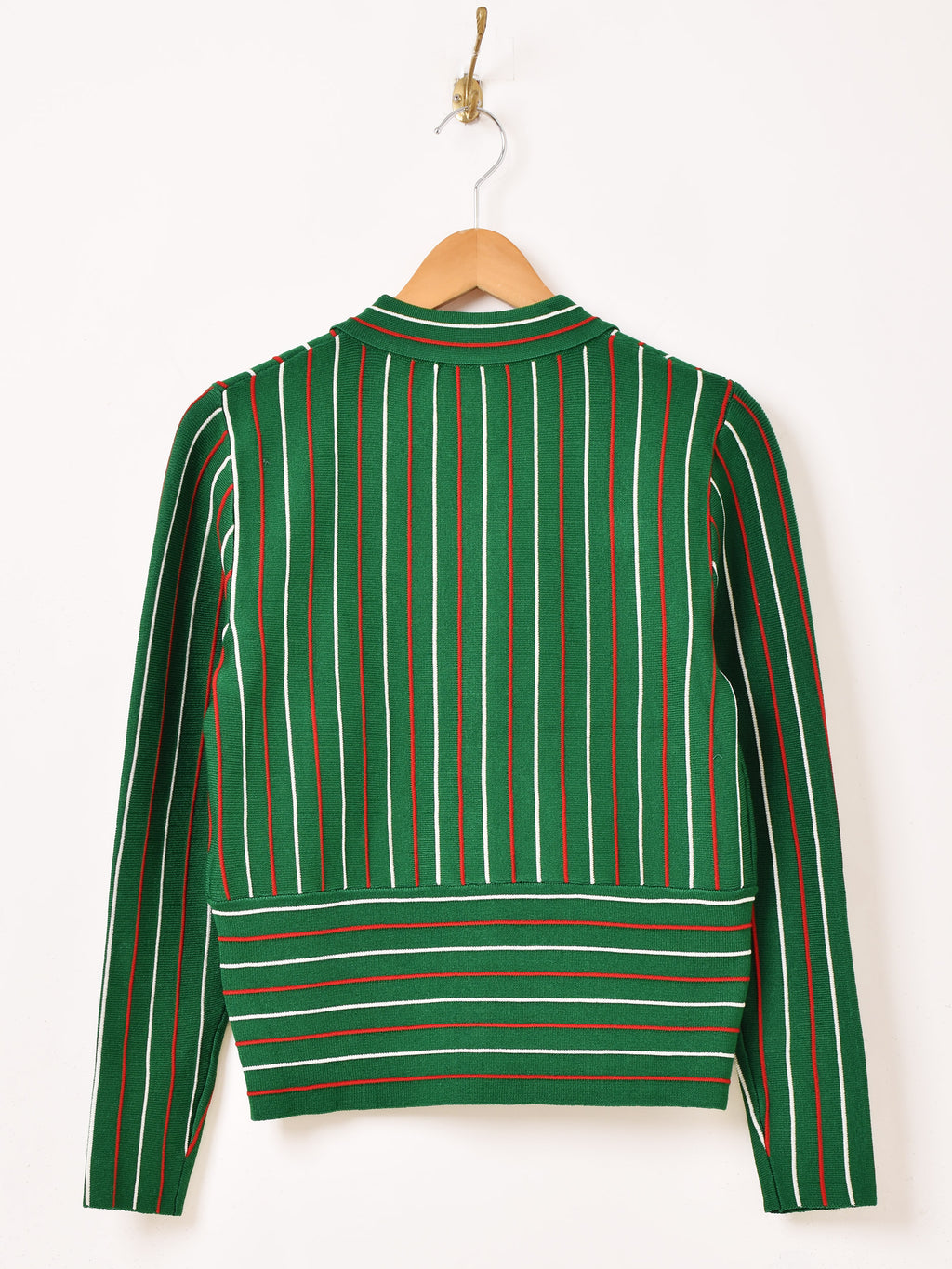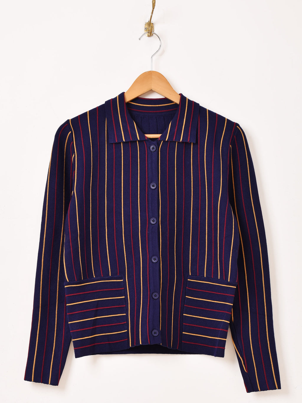 【2色展開】Meridian ストライプ 襟付き カーディガン