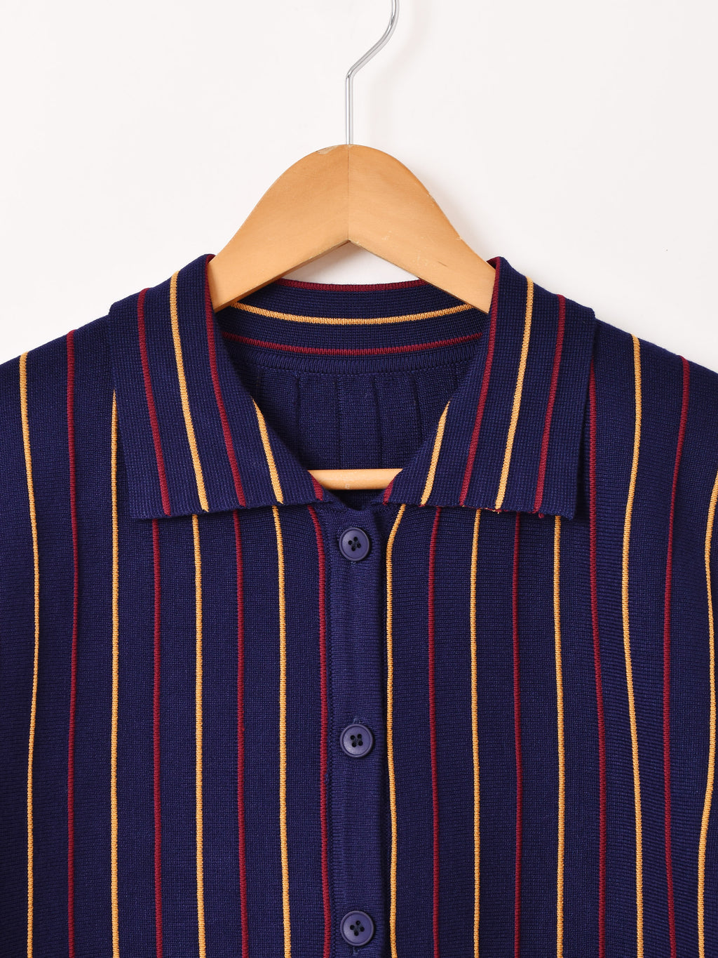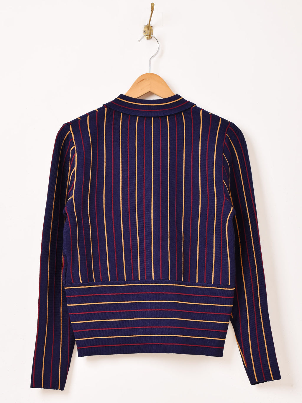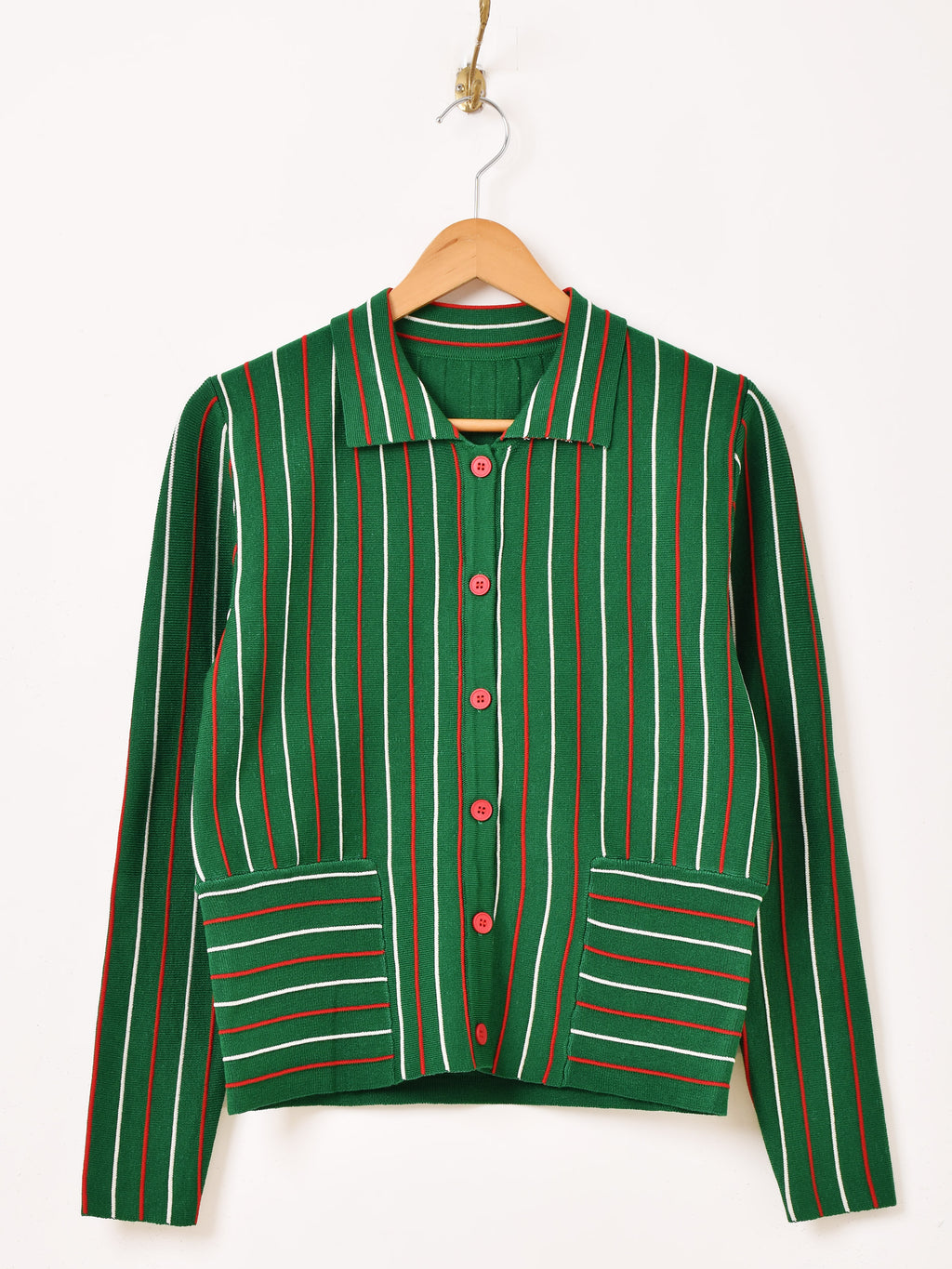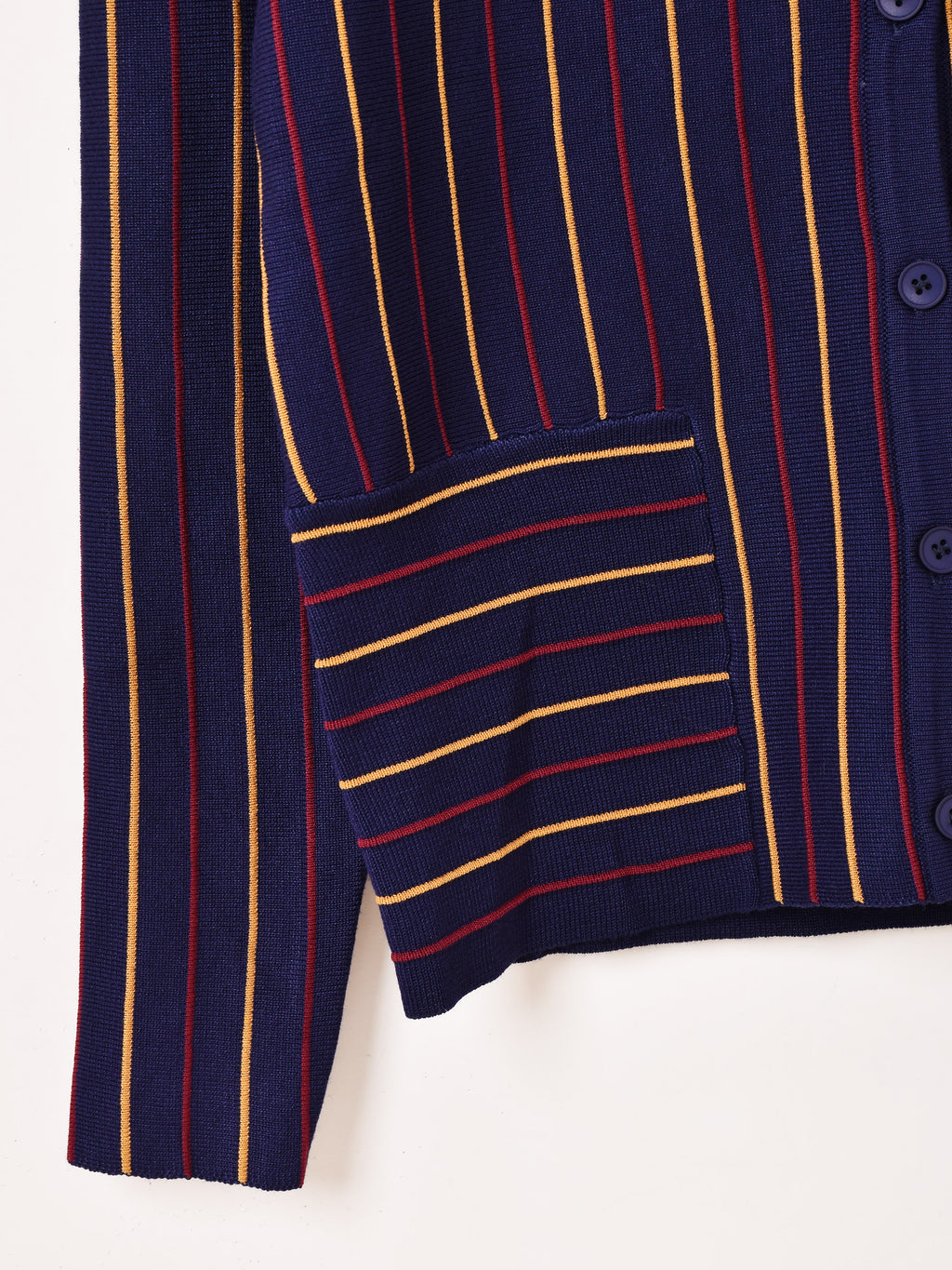 【2色展開】Meridian ストライプ 襟付き カーディガン