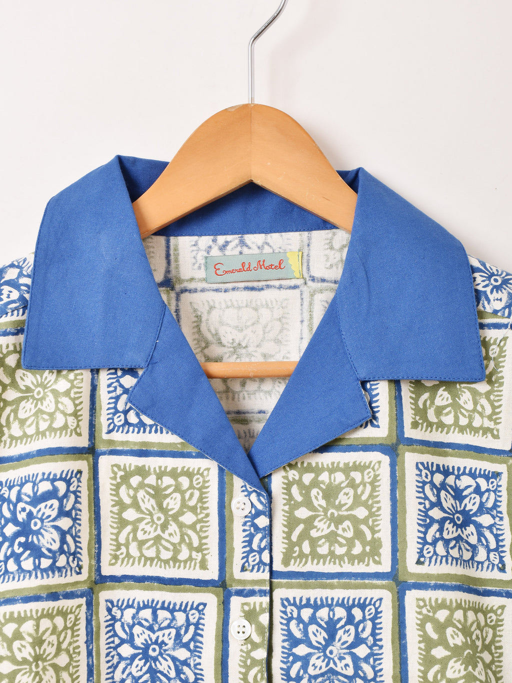 【2色展開】Emerald Motel ブロックプリント 半袖 オープンカラーシャツ
