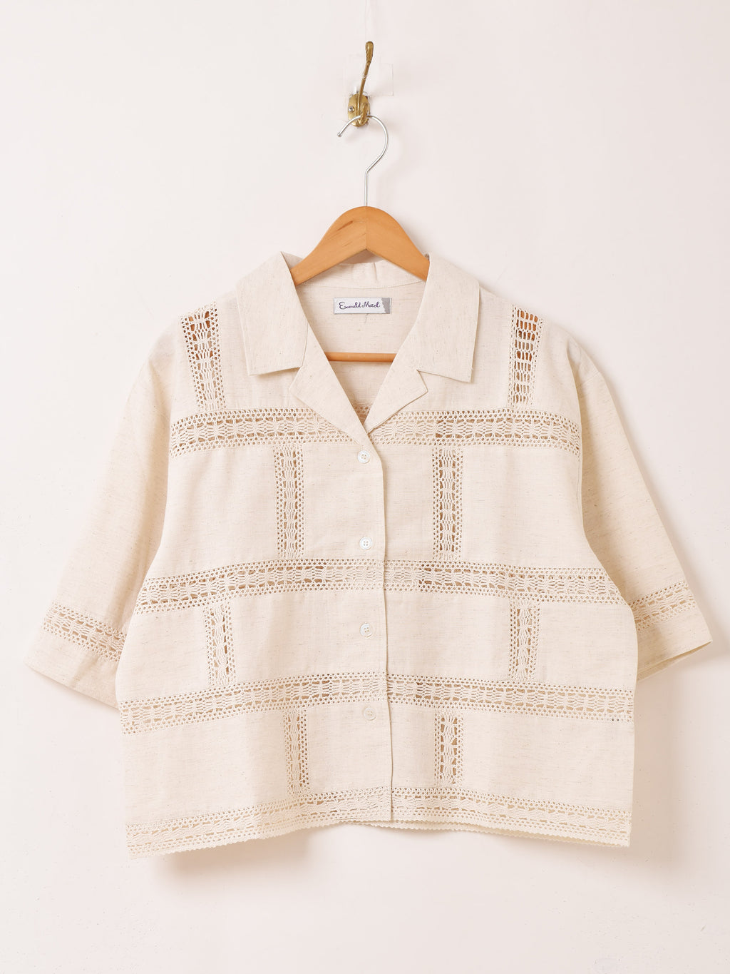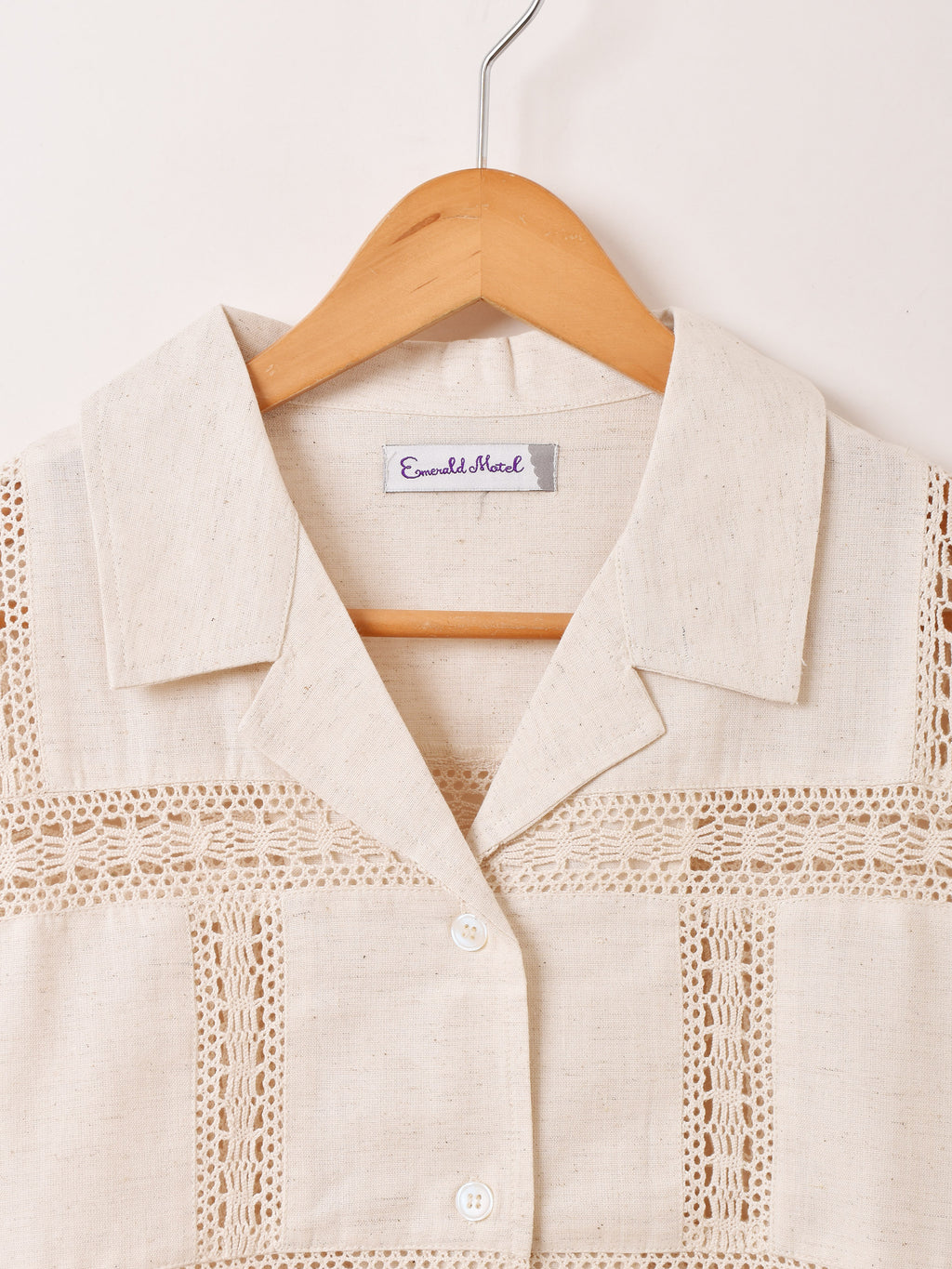 Emerald Motel クロシェレース 半袖 オープンカラーシャツ