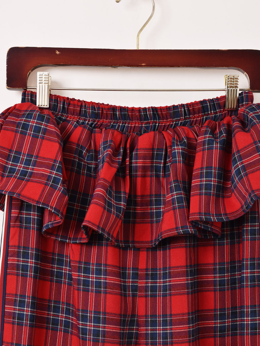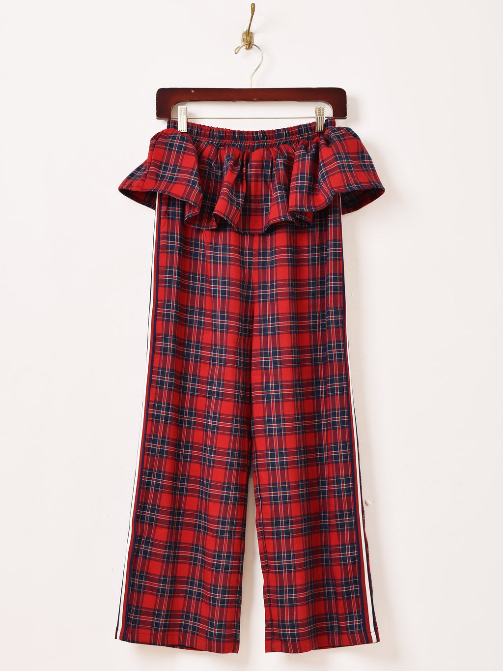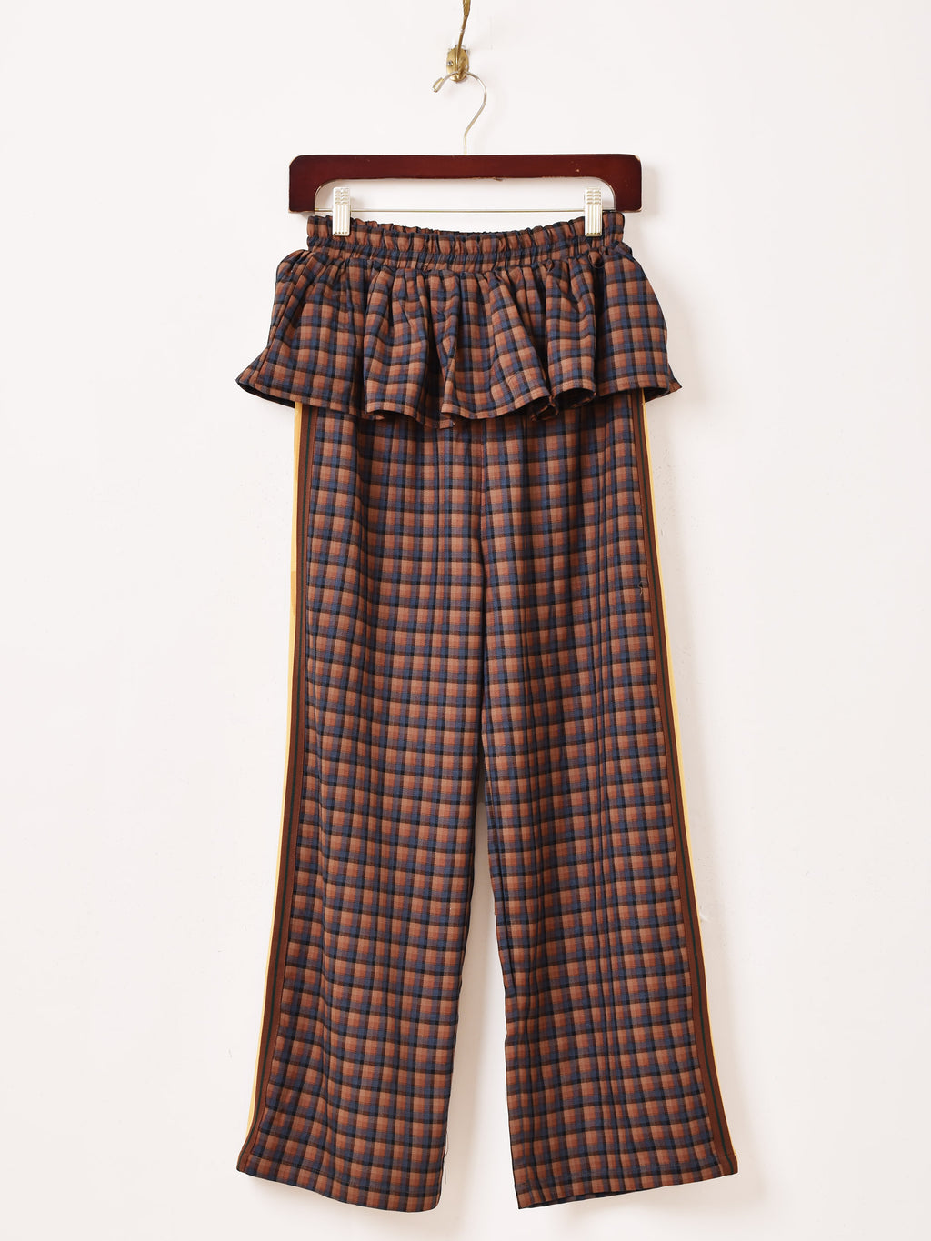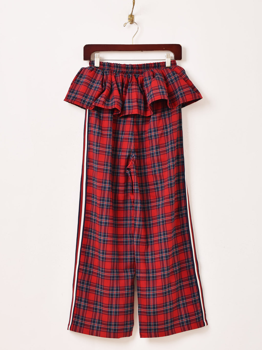 【2色展開】Meridian チェック柄 レイヤードフリル ロングパンツ