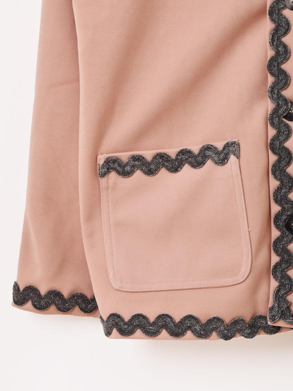 波模様のテープ刺繍をあしらったシングルジャケット。シンプルながらも、ヴィンテージのような雰囲気のデザインが魅力的です。クールなパンツスタイルにも、ガーリーなワンピースにも合わせられるので、着こなし次第でいろいろなテイストのコーディネートを楽しめます。