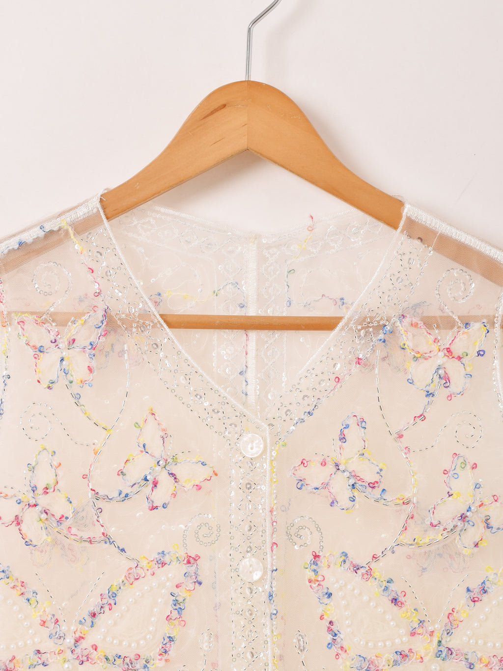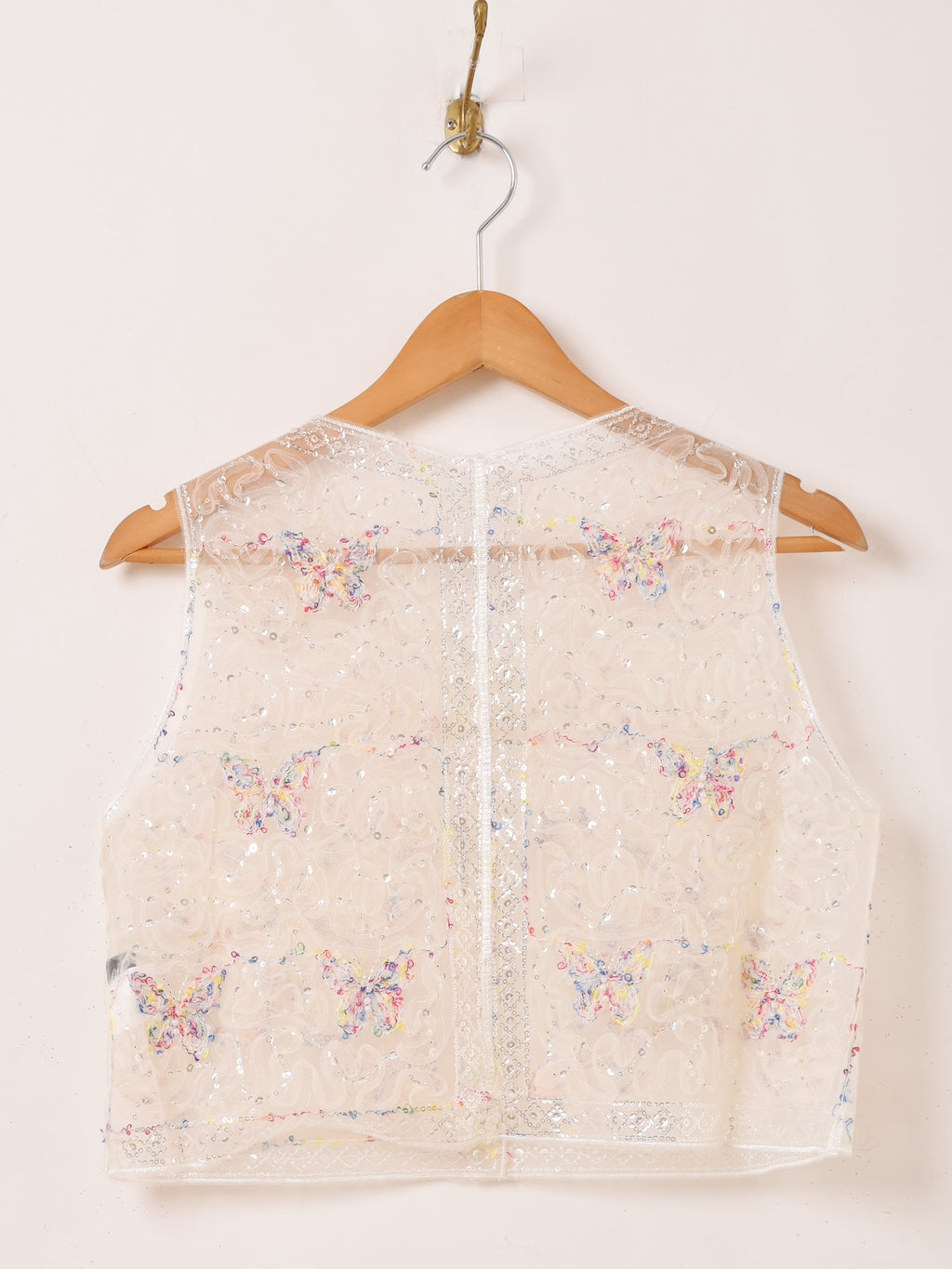 Meridian バタフライ柄 ビーズ刺繍 シアー ベスト