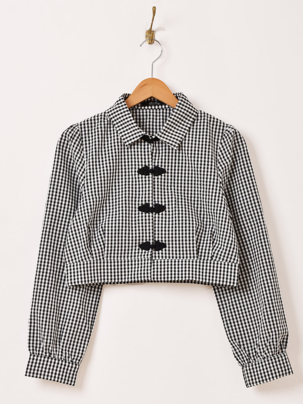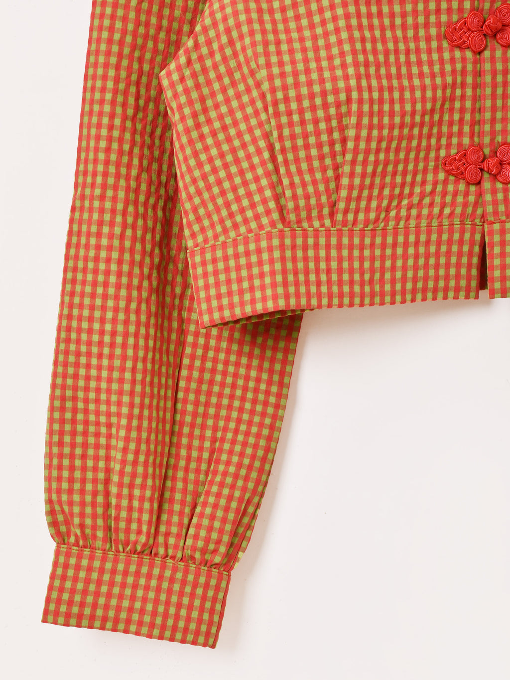 ガーリーなギンガムチェック×チャイナボタンの組み合わせが絶妙に可愛いブラウス。スタイルアップも期待できるクロップド丈で、トレンド感のあるコーディネートも楽しめる一着です。