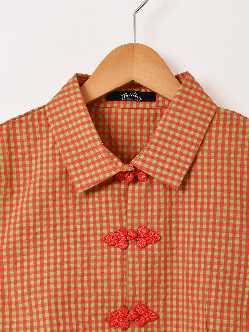 【3色展開】Meridian ギンガムチェック柄 チャイナ 長袖ブラウス