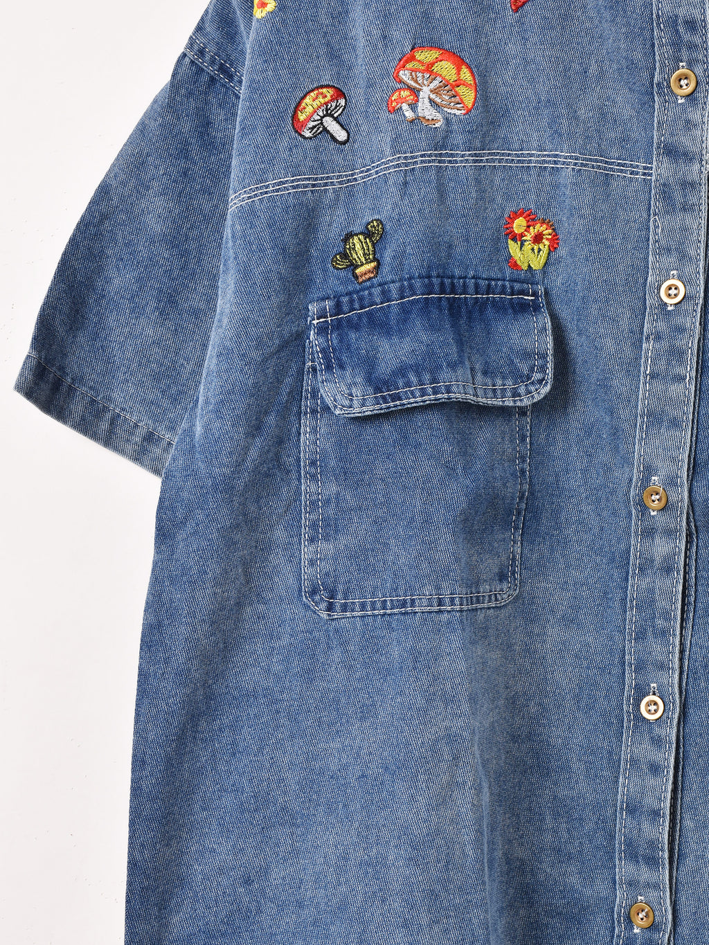 G-13876 SS SH DenimMushroomEmbroidery