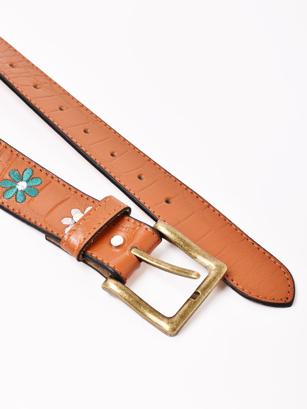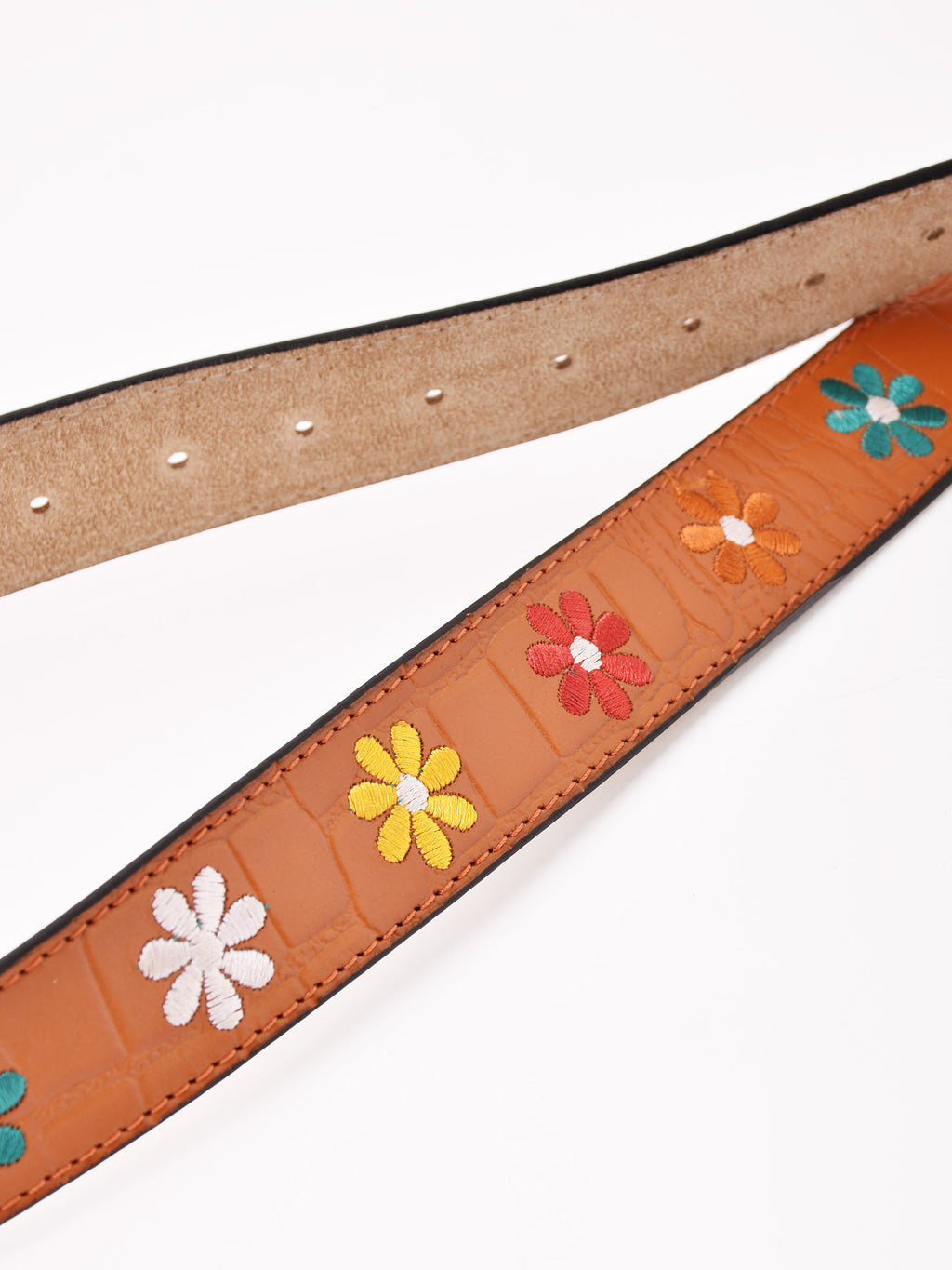 お花の刺繍をあしらった、ヒッピーデザインが魅力的なレザーベルト。コーディネートのアクセントにおすすめです。